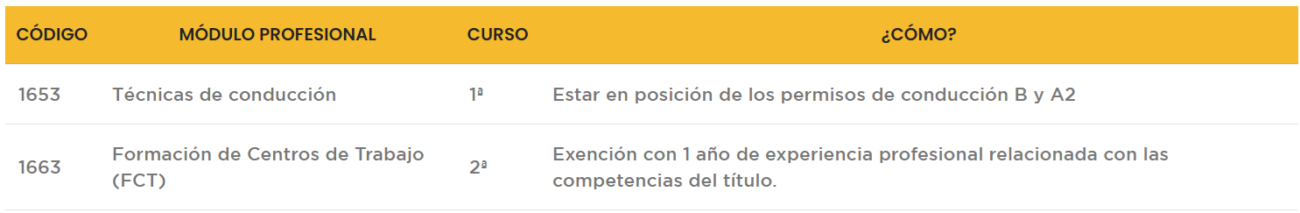 En el siguiente cuadro puedes ver de qué módulos hablamos y los requisitos necesarios para convalidarlos: